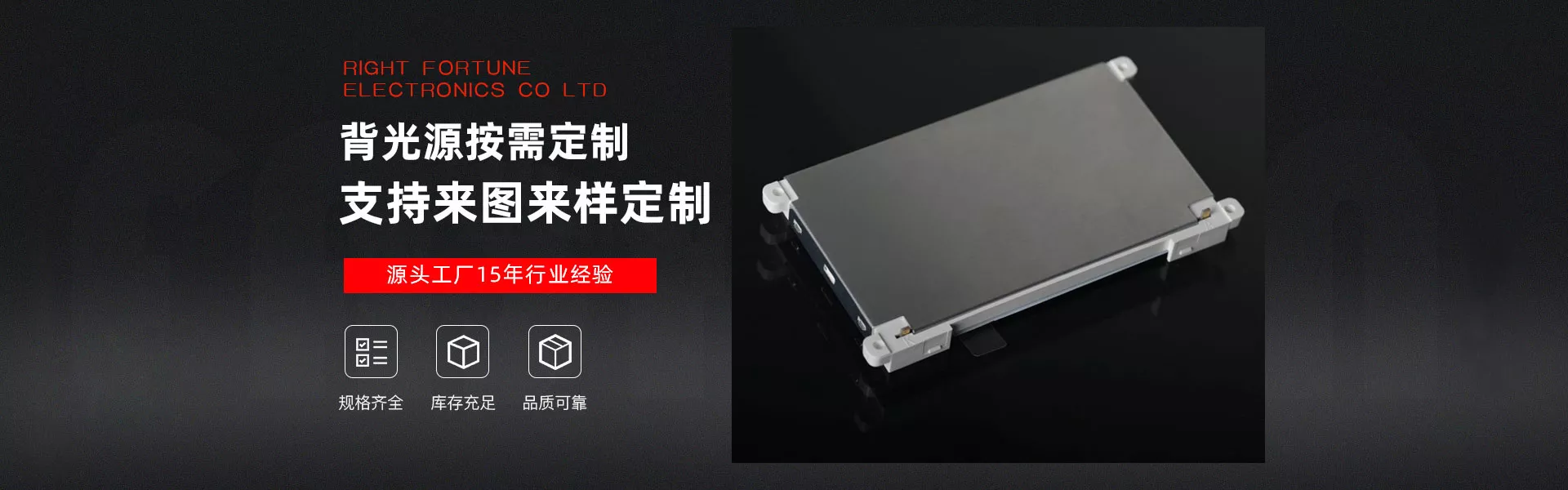 富正电子有限公司成立于2008年,是一家集研发·生产·销售于一体的背光源专业制造企业。产品广泛应用于智能穿戴·智能家电·车载电子·通讯电子·医疗器械·工控设备·仪表仪器·家用电器等高科技领域,2019年被评为高新技术企业。战略合作伙伴包括江门亿都·台湾富相·东莞富相·昆山劲佳·深圳三杰数码·东莞三杰·广州中科鸿晟·深圳晶华等客户群体。